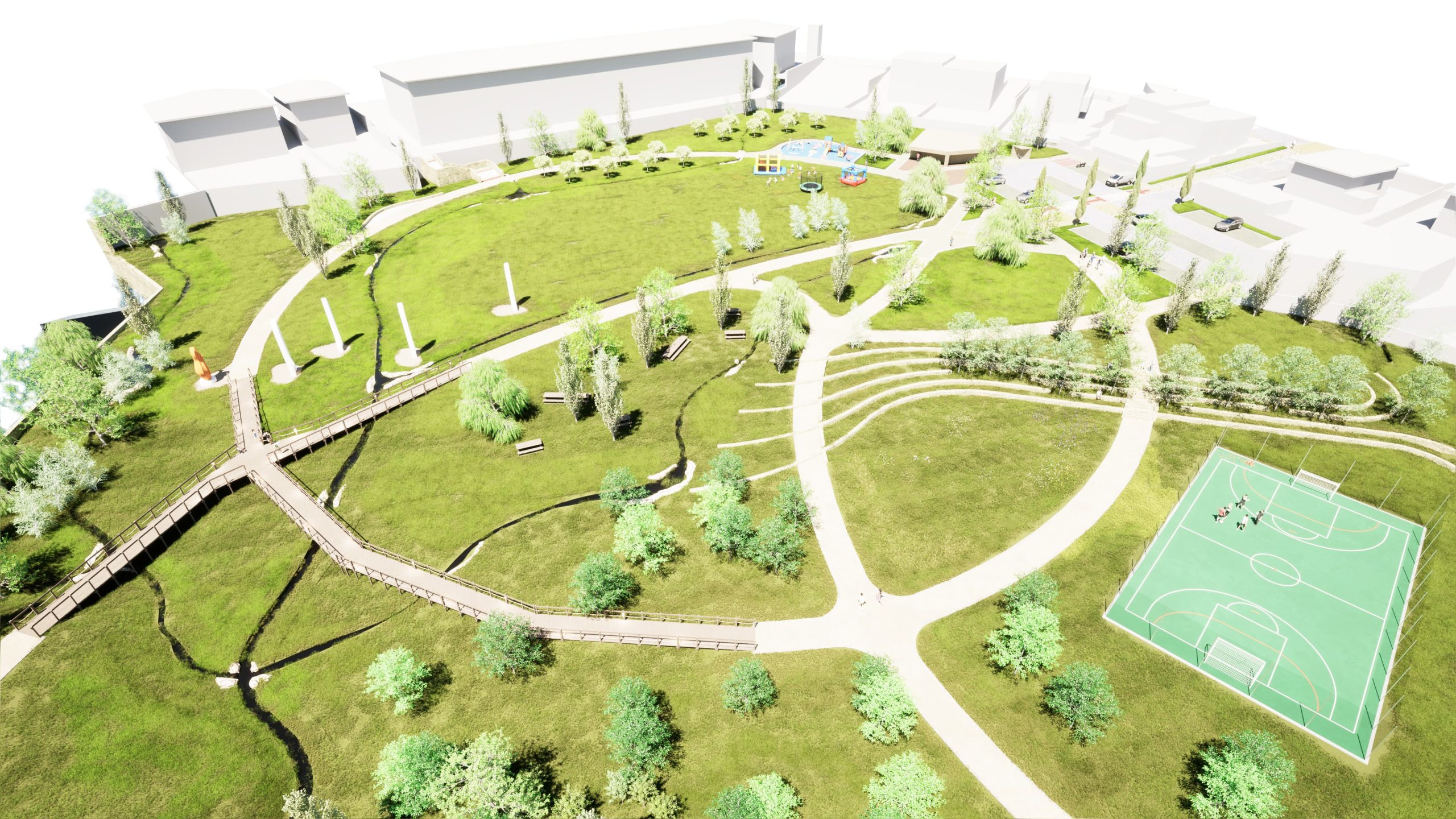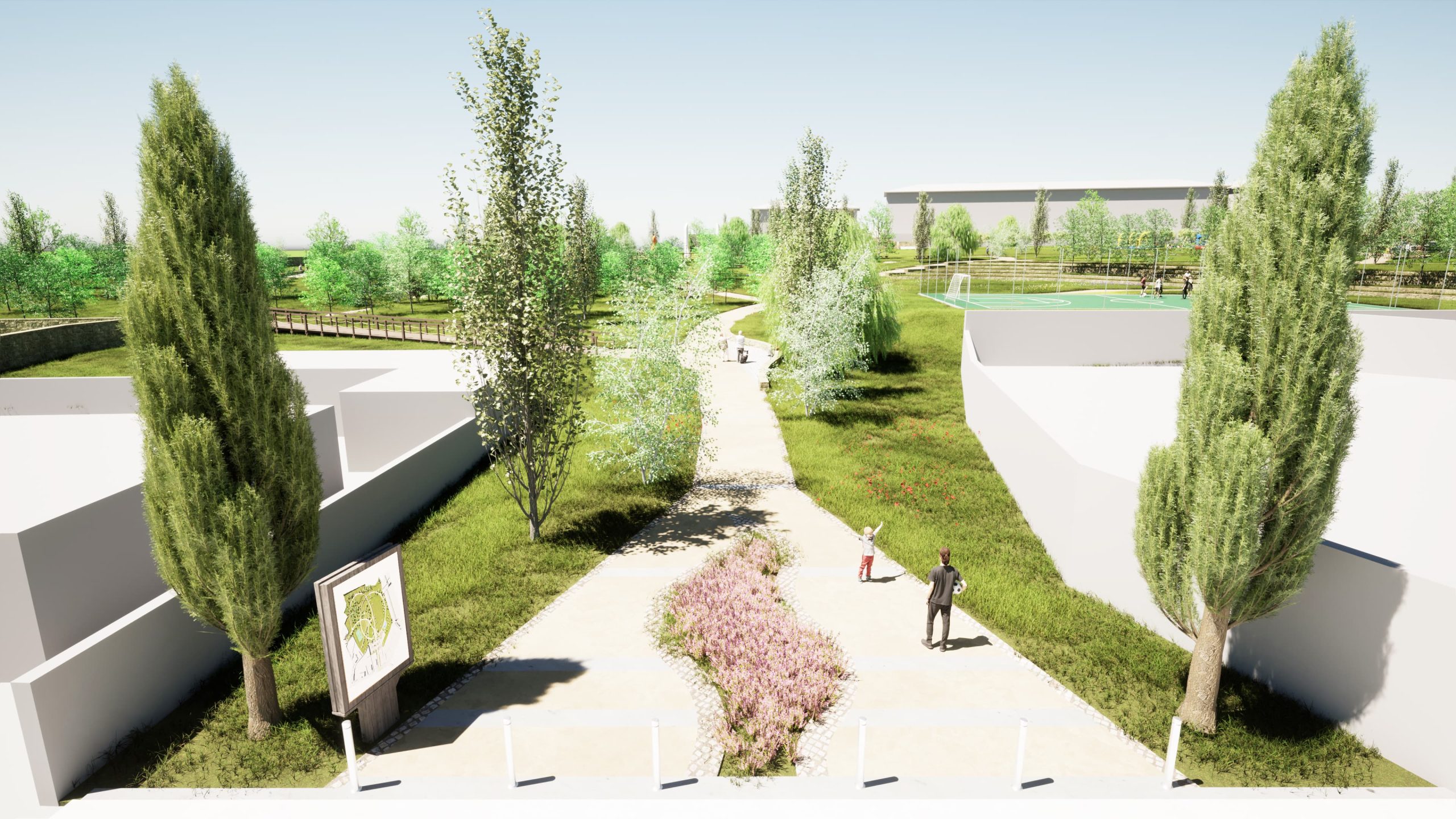 O objetivo principal do projeto é transformar uma área expectante e morfologicamente sensível num espaço estruturante, acessível e funcional, articulando valores ambientais, sociais e culturais.