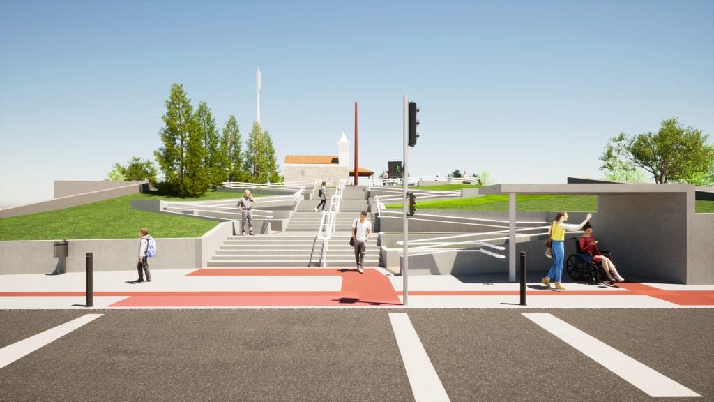 O projeto destaca-se pela utilização de elementos pré-fabricados (muretes-bancos, degraus, pavimentos e corrimãos), que possibilitaram a inclusão de rampas, escadas e plataformas acessíveis. Esta acessibilidade é reforçada por iluminação estrategicamente posicionada para indicar o percurso a seguir.
